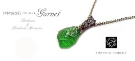 お誕生日、記念日、クリスマスや母の日などの特別なギフトにもおすすめの、1月の誕生石「ツァボライトガーネット」の原石ネックレスです。