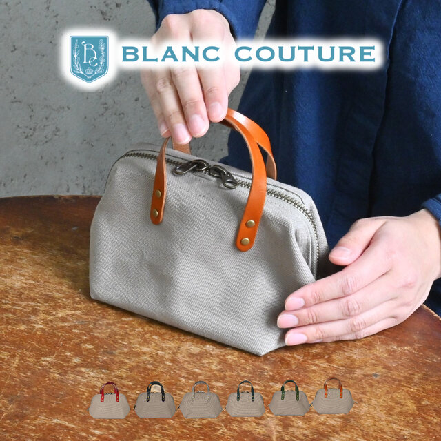 商品名:帆布ミニポーチ サンドベージュ×選べる本革持ち手6色