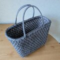 「花結び編み」のシンプルで美しい黒のカゴバッグです。
