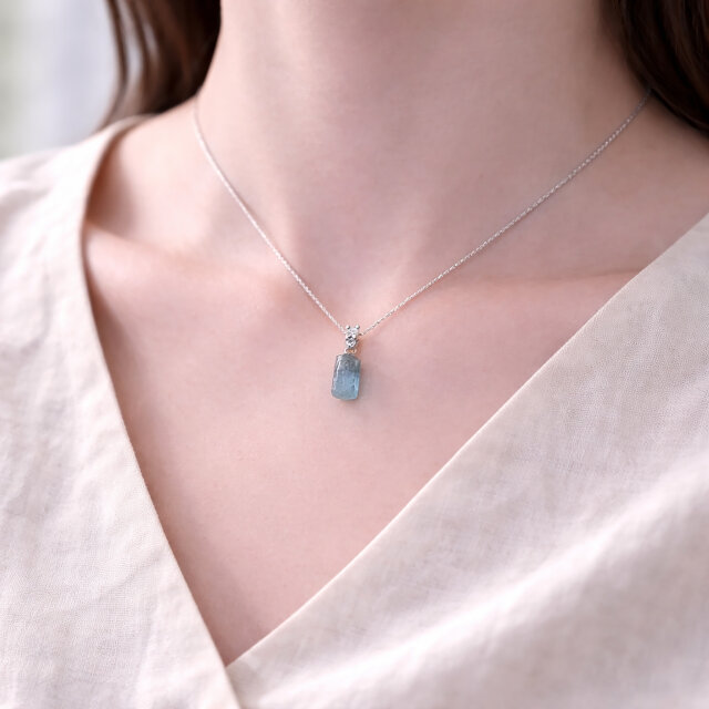 ナミビア産 アクアマリン原石ネックレス|一点物|3月誕生石|小粒・華奢・シンプルジュエリー gn110