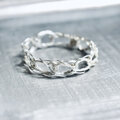 かぎ針手編みの鎖編みリング。編み目の繊細な輝きが特徴の編みリングです。シルバーワイヤーで手編みしています。シルバーフィルドほど変色がないので長くお使いいただけます。