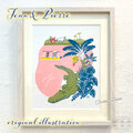 温かみのある手描きイラストが、ナチュラルな木枠のフレームにマウントされており、どんなお部屋にも馴染みます。