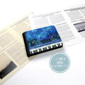 星空とピアノ(鍵盤には花模様をあしらいました)&音符がおりなす幻想的なデザインの二つ折り財布(かぶせ蓋タイプ)です。