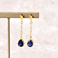 9月の誕生石アイオライトを使用した、枠留めペアシェイプファセットカットスタッドピアスです。
