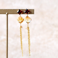 Autumn Harvest レッドガーネットスクエア スタッドピアスxシトリンピアス14kgf