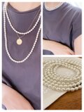 ショートの普段使いに慣れるといろんな長さに挑戦したくなりますが、ワンピースやシャツ、タートルネックなどにリラックスした雰囲気にプラスしてエレガントな大人のスタイルに持っていて損はないおすすめのパールネックレスです!