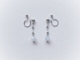 キューブ型のブルーレースアゲートとクリスタルパールを繋いだ、天然石の小ぶりなイヤリング(ピアス)です。