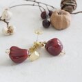 【秋に映える大人の赤】マットゴールドと秋色レッドピアス/イヤリング 秋ピアス 秋色