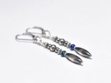 多彩ナバホパールとインディゴブルー&ブルービーズのスリムなピアス