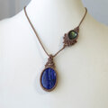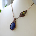 ラピスラズリ(アフガニスタン産)・ラブラドライト(マダガスカル産)1点ものマクラメ編みペンダントネックレス 3182