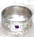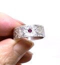 シルバー製のお花の手彫り彫刻模様リングにルビーと天然ダイアモンドが輝くデザイン。