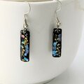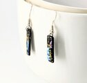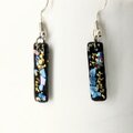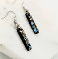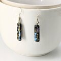 ブルーとピンクの螺鈿とゴールドラメと黒漆の短冊シェルスティックピアスイヤリング【2131】のコピー