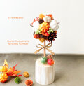 ホワイト、オレンジ、イエロー、グリーンなどの明るい色合いと、木の実たちのブラウンの組み合わせが、ナチュラルな大人のハロウィンを感じさせてくれます。