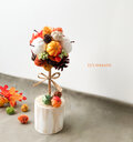 小さなスペースも明るく賑やかに彩る、秋のカラフルトピアリーです。
