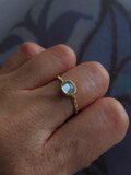ムーンストーンとアームにランダカットをほどこしたリング。