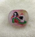 淡いピングとグリーンの背景にに金箔、プラチナ泊を散らした玉をベースに十二単衣姿の女性のパーツを埋め込みました。艶やか女性をイメージしていたんですが何故か、ぽっちゃり系になってしまいました。(笑)