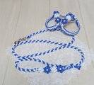 ピンクのハーフチョーク&カフェリードに続いてお願いしたこのブルーの首輪&リードもとってもステキな仕上がりで凄く気に入りました しっかりとそして丁寧に編んであり、大型犬のうちの子でも安心して使えそうです これからの季節はお散歩するのに最高な時期になりますので早速使いたいと思っています 終始丁寧な対応をしていただき、ありがとうございました 大切に使わせていただきます