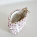 スラブ入りのざっくりとしたピンクの糸地に白のコットン糸を編み込んだ可愛らしいチェック柄のポーチに内布とファスナーを付けました。