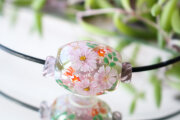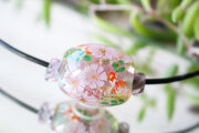 (ワックスコードタイプの物より大きめで、花や金魚も多く入れた豪華なとんぼ玉です。)