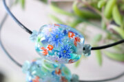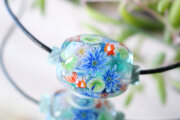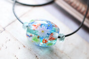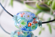 (ワックスコードタイプの物より大きめで、花や金魚も多く入れた豪華なとんぼ玉です。)