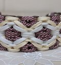 淡クリーム、白、えんじ&白のミックス色、茶の4色編みです。