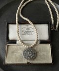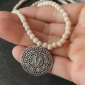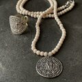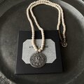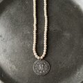 艶消しのリバースストーンとアンティーク仕上げの刺繍メダルは落ち着いた上品な雰囲気のネックレスで大人のアイテムとしておすすめです。