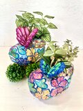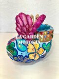 ガラスタイル付き 花柄 ラメちょうちょ付き ブルー ブーツプランターオブジェ手作り セメント 植木鉢 かわいいブーツ