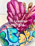 絵柄は花の形をモチーフ、ラメちょうちょをアクセントに