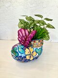 手作りプランターは植物を植える用に作っている為底に穴が空いていますので直接お水を入れて花瓶には使用しないでください。