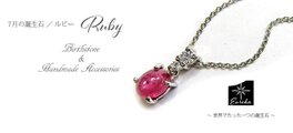 こちらは、丸みのあるカボッションカットのルビーを使用した、シンプルなペンダントネックレスです。