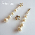 2wayピアス オリジナルリボンとパール&クリスタル(ゴールド)