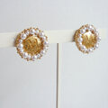 ホワイト~クリームカラーのパールとゴールド色のキレイ系ピアスです。