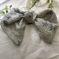 金沢リネン生地の刺繍が特徴的なヘアゴムです。