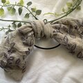 金沢リネン生地の刺繍が特徴的なヘアゴムです。