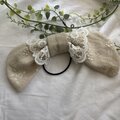 リネン生地の実とリーフ刺繍が特徴的なヘアゴムです。