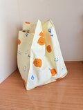 テイクアウトのお弁当やお惣菜、スイーツを入れても傾きにくい、マチ広タイプのエコバッグです。