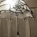 ランプ下部から見上げた時のデザインもクモの巣をイメージしてデザインしております。お遊び気分で小さな蜘蛛のパーツも吊り下げております。(取り外し可能)