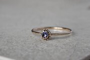 深い青色がとても綺麗です。石を囲むデザインとも合っており、気に入りました。ありがとうございました。