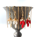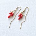 紅の房きらめき|赤珊瑚×淡水パール フリンジピアス 14kgf 3月誕生石