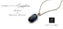 お誕生日、結婚記念日のお祝いや、ホワイトデー、クリスマスなどのイベントにお薦めの9月の誕生石、美しいサファイア原石のネックレスです。サファイアの原石は最近では入手困難になっておりとても貴重です