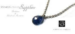 お誕生日、結婚記念日のお祝いや、ホワイトデー、クリスマスなどのイベントにお薦めの9月の誕生石、サファイアのギフトジュエリーです。可愛いブリオレットカットのブルーサファイアを使ったシンプルで優しいシルエットのネックレスです。ご自分用、またプレゼントとしてお薦めのジュエリーです。