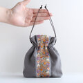 インド刺繍リボンをあしらったマチのある巾着ポーチ