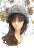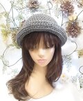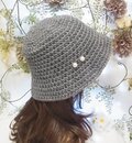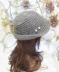 秋 冬 帽子 バケットハット パールブローチ付き グレー