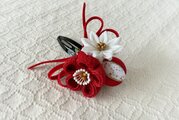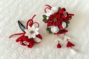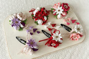 ちりめんで制作したつまみ細工の梅と小菊、鞠のようなちりめん玉の髪飾りのセットです。