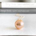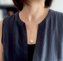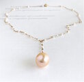 虹色に輝くペアシェイプ型の大粒のエジソンパールをトップに付けたペンダントネックレス。