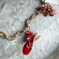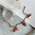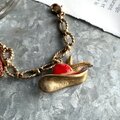 3種類の赤いボーラーハットがチャームになったゴールドトーンチェーンブレスレット。