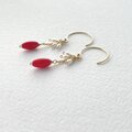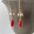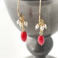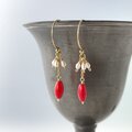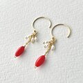 赤のささやき|赤珊瑚と淡水パールの華奢ピアス 14kgf 3月誕生石