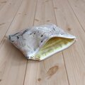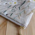 やや厚手でざっくりとした質感が魅力のハーフリネン表地には薄手の接着芯を貼布、内布は薄めの生地です。ポーチ自体は使いやすい厚みです。
