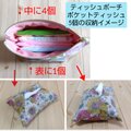 また、鼻炎や花粉症の方など、ポケットティッシュをたくさん使われる方は、ポケットティッシュのストック(4個くらい)をポーチの中に入れてのご使用も便利です。