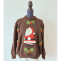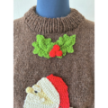 【ユニセックス】ウール100%のハンドメイドセーター | 立体サンタとクリスマスリース